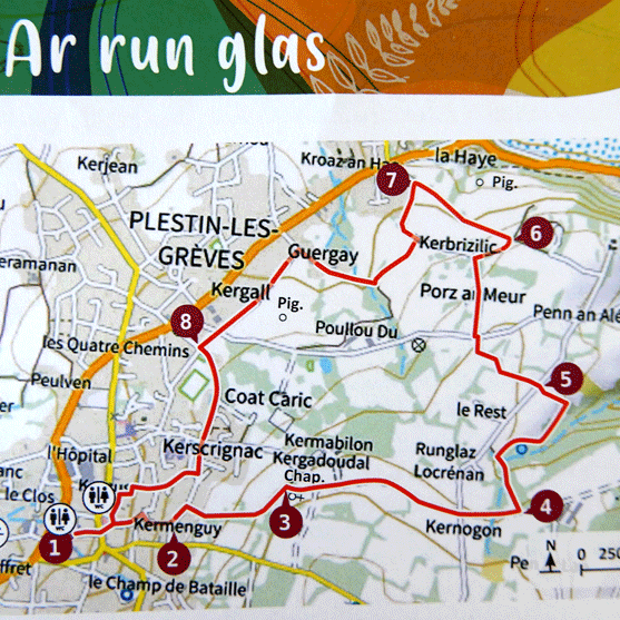 Les chemins plestinais souhaitaient retravailler la présentation de leur circuit de randonnées. Idéographik a été sollicité pour la réalisation et pour apporter son expertise sur les besoins spécifiques pouvant être rencontrer par les marcheurs (repérage dans l’espace, daltonisme, non maîtrise de la langue…)